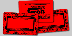 Zur bequemen und individuellen Bezahlung, sowie zur eigenen Kontrolle der praktischen Fahrstunden, gibt es unsere "Fahrschulkarten" - die man sich übrigens gut wünschen und schenken lassen kann. Einfach zur Fahrstunde mitbringen und losfahren.